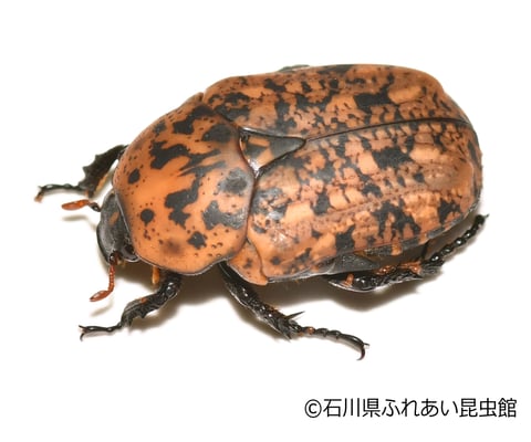 赤色の体に黒いまだら模様がカッコいい、渋いハナムグリです。