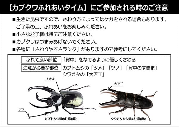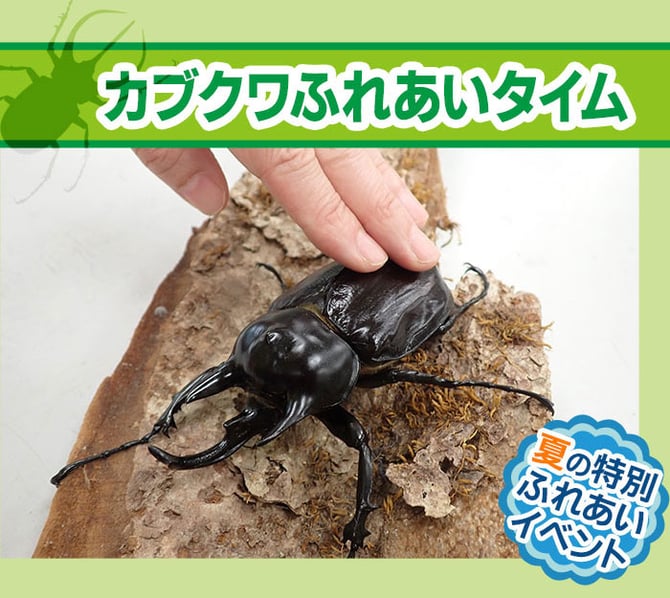 人気種のヘラクレスオオカブト、ギラファノコギリクワガタをはじめ、オオクワガタやタランドゥスオオツヤクワガタなど、これまで当館ではふれあうことが出来なかった種も登場。この特別な時間にレッツゴー!