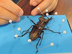 昆虫の飼育をやってみたら、一歩進んで昆虫の標本も作ってみましょう! 当館では、 PDFによる「昆虫標本のつくりかた」マニュアル を用意しております。こちらを参考にご覧ください。